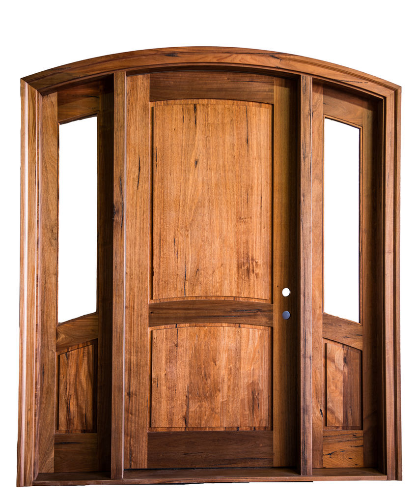 This semi arched or eyebrow door is constructed out of 100 percent Medieval Walnut. The soft and soothing arches fit nearly all styles of homes. The solid door and mostly wood sidelights are a showcase of the beautiful and strong entry system. Your entrance will invite plenty of light with the Ashby.