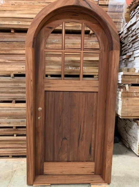 This full archtop entry door is constructed from 100 percent solid Medieval Walnut. Its charming and alluring arches invite all to come in and see what is behind. The Camelot door comes with a functioning speakeasy in the many sizes that the entry system comes in. You can add iron clavos for an even more old-world charm. The Camelot makes a great entrance to the house, wine room, portico, or the coolest interior doors. A real conversation door.